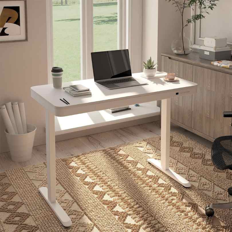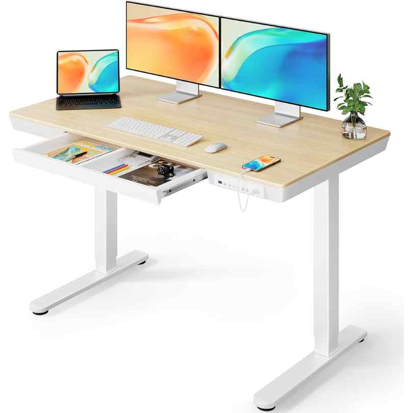 The ErGear Electric Standing Desk offers a sleek and modern solution for any home or office setup. Featuring a durable natural wood finish, this 48 x 24-inch desk combines style with functionality. Easily switch between sitting and standing with the desk’s adjustable height, which ranges from 28.3″ to 46.5″. With four preset buttons, you can quickly return to your preferred height settings. The built-in USB-A and Type-C ports keep your devices charged and within reach, while the dual-zone drawer helps you maintain a clutter-free workspace. Plus, with its preassembled desktop, setting up this desk is quick and hassle-free. Perfect for enhancing productivity and organization in any workspace.